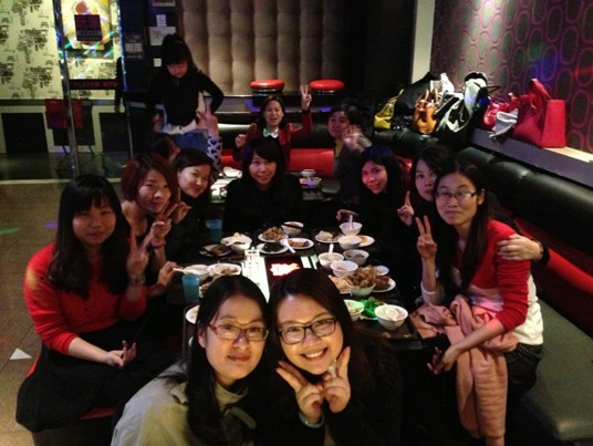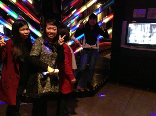 3月7日晚,女職工們提前一小時下班,一同前往玩家KTV參加活動?;顒又校蠹覡幭喃I(xiàn)歌,氣氛熱烈。
