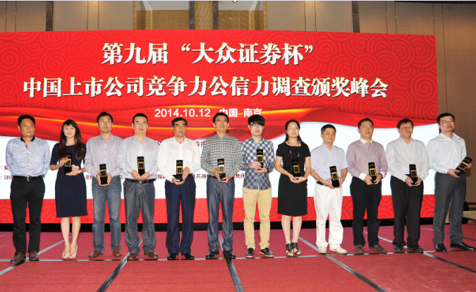 2014年10月12日,由大眾證券報主辦、新浪財經協辦的“第九屆中國上市公司競爭力公信力調查評選活動”頒獎典禮在南京舉行。