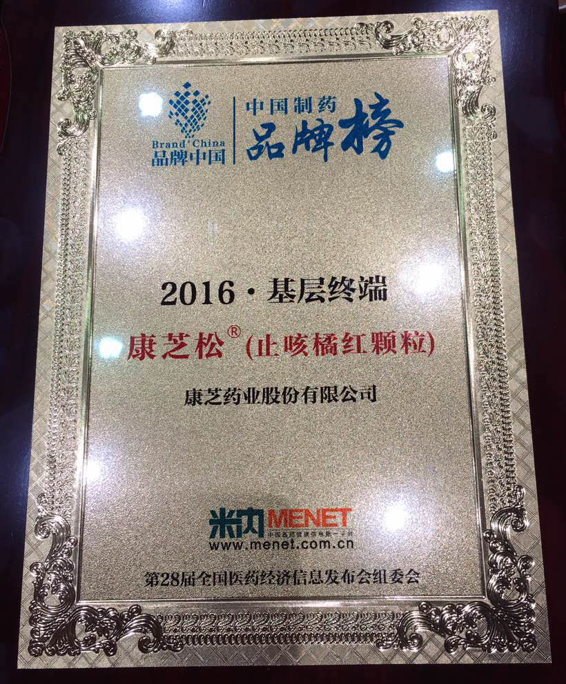 11月24日,“2016中國制藥?品牌榜”在第28屆全國醫(yī)藥經(jīng)濟(jì)信息發(fā)布會(huì)上揭曉,康芝藥業(yè)旗下明星產(chǎn)品康芝松?(止咳橘紅顆粒)成功入選基層終端品牌榜榜單。康芝藥業(yè)市場醫(yī)學(xué)部總監(jiān)劉湛先生受邀出席頒獎(jiǎng)典禮并受領(lǐng)獎(jiǎng)牌。