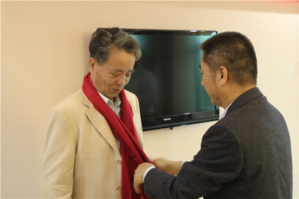 洪江游董事長在百忙之中參加了退休儀式。在致辭中,洪董充分肯定了老洪叔25年來對康芝所做的貢獻,并回憶起當年公司最困難、最艱苦時,老洪叔不離不棄、主動提出不要工資、自己養(yǎng)活自己的感人事跡。接著,洪董代表康芝藥業(yè)為老洪叔頒發(fā)了光榮退休證書,并親自為老洪叔圍上紅圍巾,借此向老洪叔多年來對公司的辛勤付出表示衷心的感謝,他還祝愿老人家身體健康、闔家歡樂、晚年幸福。