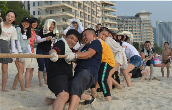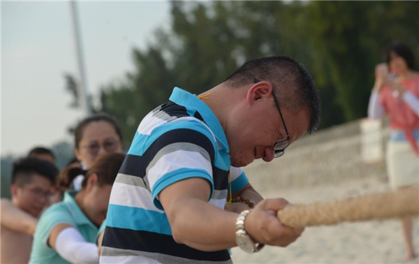 最后,工會還組織了沙灘拔河比賽。參賽隊員們個個摩拳擦掌,鉚足了勁兒,只等裁判員哨聲一響便紛紛使出洪荒之力,齊心協(xié)力往后拉,為“拔得頭籌”而拼盡全力。周圍的觀眾也毫不示弱,變身啦啦隊員,為自己的團隊加油助威、齊聲呼喊。一時間,歡呼聲、吶喊聲、加油聲此起彼伏,將比賽逐漸推向了白熱化。拔河比賽充分展現(xiàn)康芝人上下齊心協(xié)力、堅持不懈、敢拼敢為的良好精神風貌,進一步增強了企業(yè)凝聚力。
