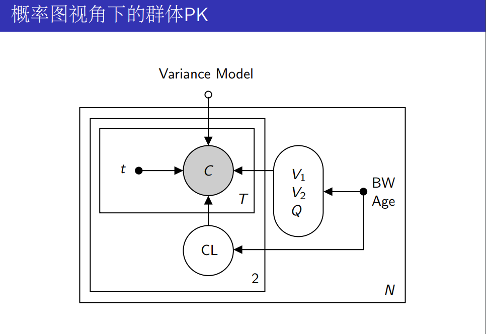 康芝團隊率先展示了部分在研項目,包括將定量藥理學用于兒童個性化給藥的最新案例,以及開發群體藥代動力學核心自主新算法的倡議。兒童劑量的計算借助牛頓法使得藥物暴露量處于安全等效的區間內,而群體藥代動力學新算法借助概率圖模型把群體差異的因果關系呈現為貝葉斯網,再借助MCMC采樣獲得參數的后驗概率分布。