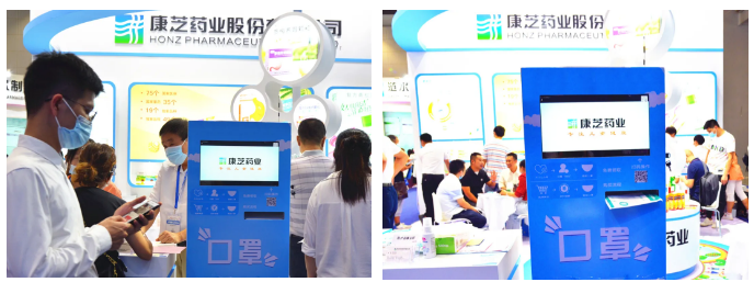 康芝品類豐富的防疫產品,包括醫用口罩、兒童口罩、防護口罩以及消毒產品首次亮相藥交會,制藥企業的質量保證以及細心周到的交流服務,吸引了大批賓客前來參觀、體驗和洽談。