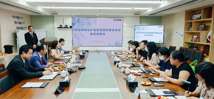 914日,康芝藥業股份有限公司蘇拉明鈉治療急性腎損傷新適應癥臨床啟動會在廣州總部順利舉行,康芝藥業首席科學官辜列博士、副總裁兼董秘林德新、戰略發展部總經理龔駿劍等高管出席會議正式宣布公司旗下廣東康大制藥有限公司申報2.4類新藥注射用蘇拉明鈉治療對利尿劑抵抗的急性腎損傷,獲國家藥監局臨床試驗默示許可并正式開啟二期臨床試驗的喜訊。