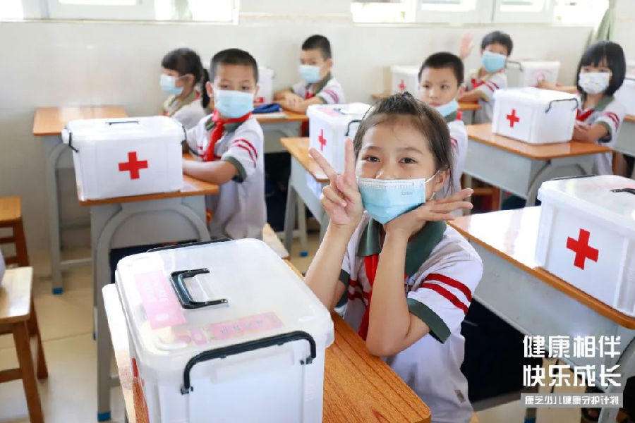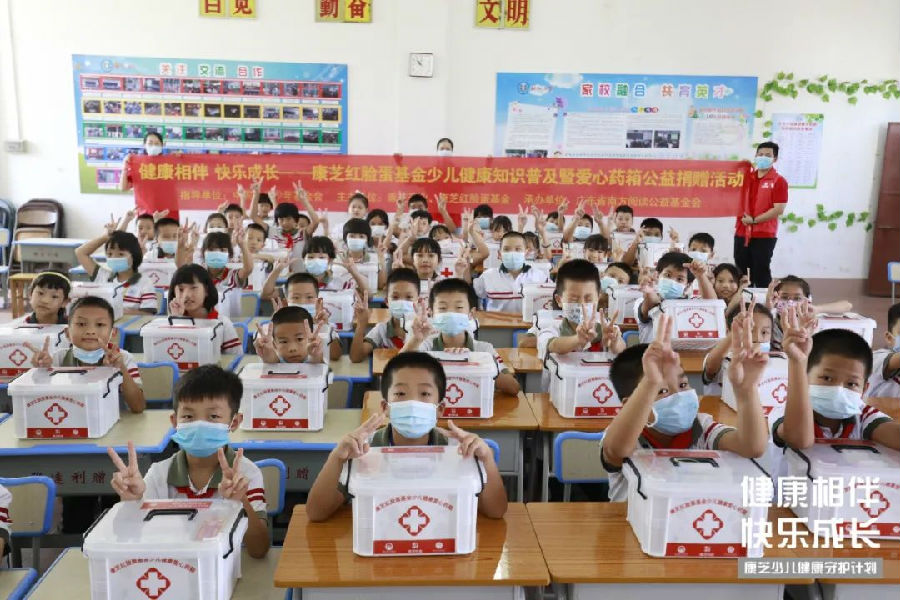 本次公益活動現場不僅學校師生們帶來了來自康芝美好中秋祝福,還向合水小學的孩子們派發了286個康芝紅臉蛋愛心藥箱,以實際行動為師生們的健康保駕護航。
