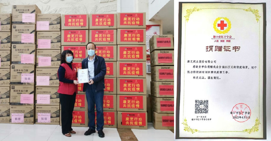 近日海口市疫情形勢嚴(yán)峻多發(fā),全市人民團(tuán)結(jié)一心共同抗疫。在疫情阻擊戰(zhàn)的關(guān)鍵時期,知名上市藥企康芝藥業(yè)一馬當(dāng)先,在收悉海南省醫(yī)藥行業(yè)協(xié)會的捐贈倡議后,第一時間與協(xié)會取得聯(lián)系,并表示愿意捐贈50萬只康芝愛心防疫口罩,以實際行動積極志愿??诘貐^(qū)疫情防控工作。