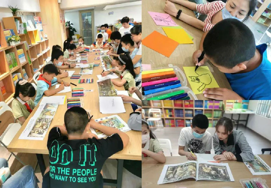 志愿者伍老師挑選了名為《七彩下雨天》的繪本,結合書中圖形的變化為在場的“小星星”們講述下雨天的故事。在色彩豐富的視覺刺激和老師的情景引導下,孩子們慢慢融入、逐漸敞開心扉,紛紛將自己的想法以畫作的形式表達出來。