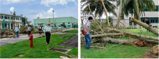 臺(tái)風(fēng)災(zāi)后,海南生產(chǎn)基地全體員工上下齊心,克服間歇性停水停電的困難,積極主動(dòng)第一時(shí)間投入設(shè)備設(shè)施搶修、現(xiàn)場(chǎng)清理等家園重建工作,每一個(gè)忙碌的身影都充分體現(xiàn)出康芝大家庭中來(lái)自“家”的溫暖和情懷。