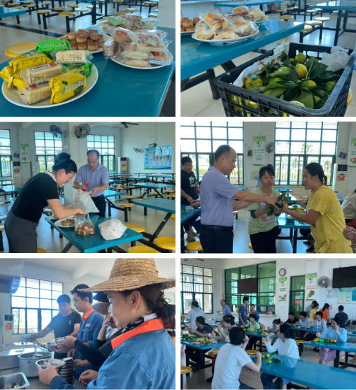 工會還在飯堂精心準備了點心、鮮果、防暑藥品等物資,并提前開啟食堂通風與制冷設備進行室內降溫,確保員工們在休息時刻能感受到家的溫暖。當員工們疲憊歸來,眼前溫馨的一幕令他們十分感動,臉上洋溢著感激的笑容。工會主席向大家分發橘子和點心,并表達了誠摯的關懷:“所有在酷暑中辛勤工作的員工們辛苦了,愿這份小小的關懷,能讓大家感受到溫暖。”康芝藥業海南區工會以實際行動詮釋了本次康芝藥業海南生產基地復工復產工作的力量、速度與溫情。