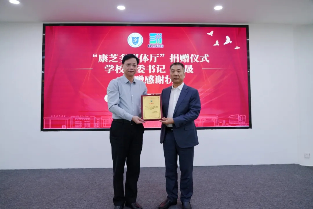在與會(huì)師生、校友的見(jiàn)證下,劉晟書記向洪江游董事長(zhǎng)頒發(fā)捐贈(zèng)感謝狀。改造后的“康芝多媒體廳”,不僅配備了先進(jìn)的設(shè)備,更融入了前沿的教育理念,將成為一個(gè)集教學(xué)、研討、娛樂(lè)、交流于一體的綜合性場(chǎng)所,為培養(yǎng)具有國(guó)際視野、創(chuàng)新精神和實(shí)踐能力的醫(yī)藥人才提供強(qiáng)有力的支撐。