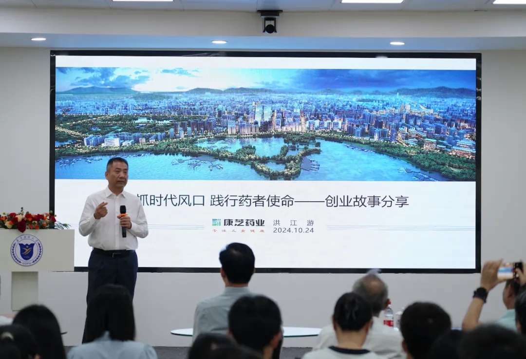 捐贈(zèng)儀式后,“康芝多媒體廳”迎來(lái)首場(chǎng)活動(dòng)——第十期創(chuàng)新創(chuàng)業(yè)下午茶主題講座。洪江游董事長(zhǎng)作為分享嘉賓,以“緊抓時(shí)代風(fēng)口 踐行藥者使命”為主題,圍繞“我的大健康情結(jié)”“三十余載深耕大健康的創(chuàng)業(yè)之路”分享了自己堅(jiān)定大健康事業(yè)初心、錨定創(chuàng)業(yè)目標(biāo)、順應(yīng)時(shí)代浪潮、抓準(zhǔn)機(jī)遇積極投身于健康發(fā)展的創(chuàng)業(yè)故事。