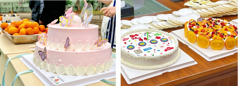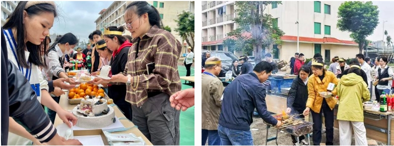 趣味游戲結束后,工會還精心準備了豐盛的小吃、新鮮的水果、色香味俱全的自助燒烤和精致的生日蛋糕,現場搖身變為美食的天堂?;顒蝇F場歡笑聲交織回蕩,員工們全情投入,盡情享受這一充滿歡樂與溫情的美好時刻。